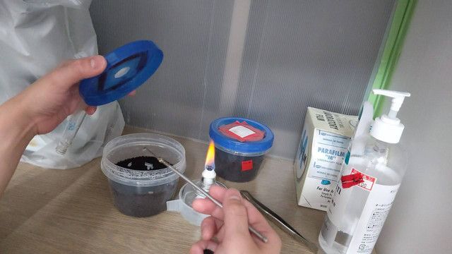 菌糸やきのこ、汚い部分を触った器具は火あぶりする(そしてよく冷ます)